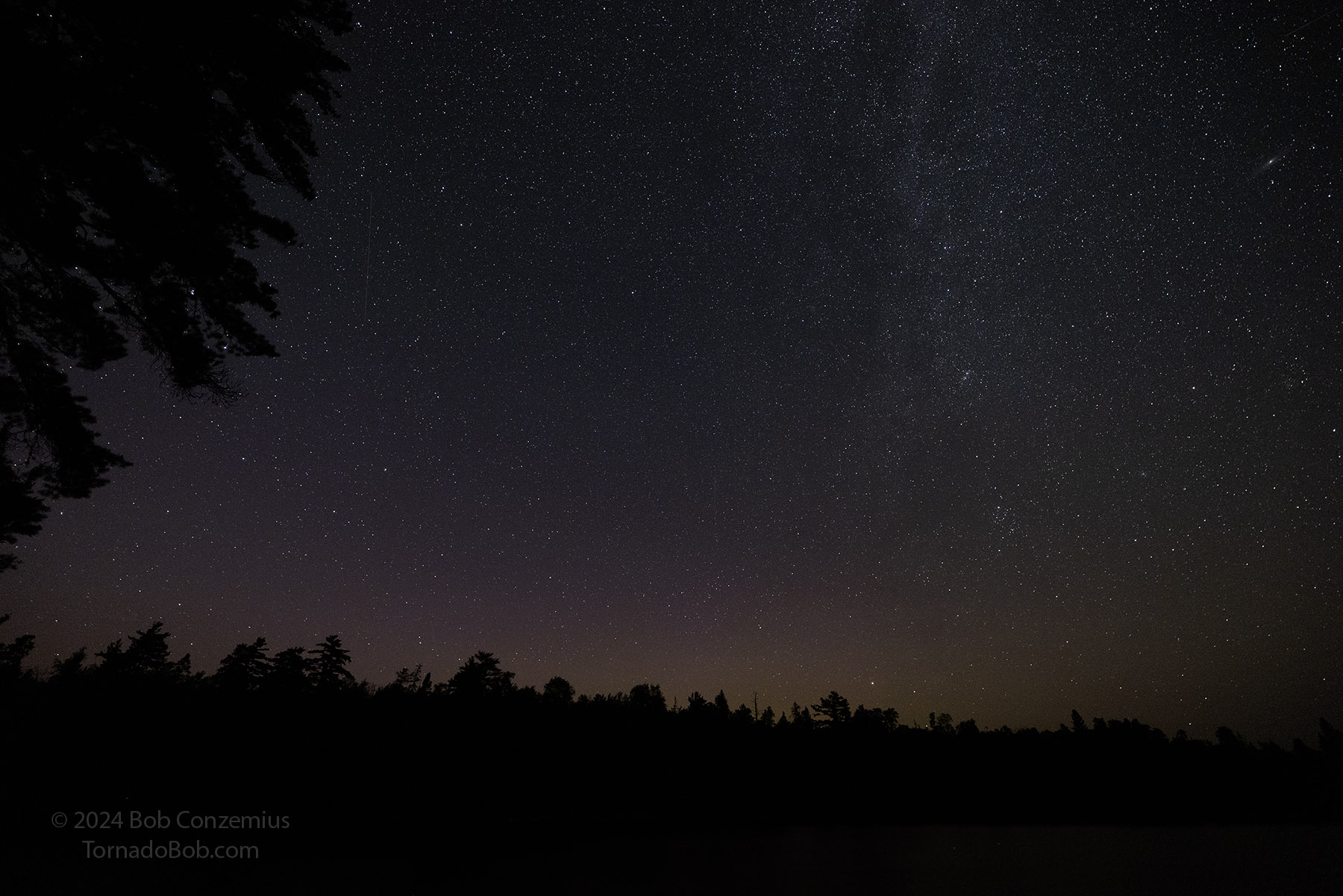 This was a night of auroral glow. I had kind of hoped for a continuation of the show from the night before, but Bz just didn't stay far enough south. There was just a glow on the far northern horizon.