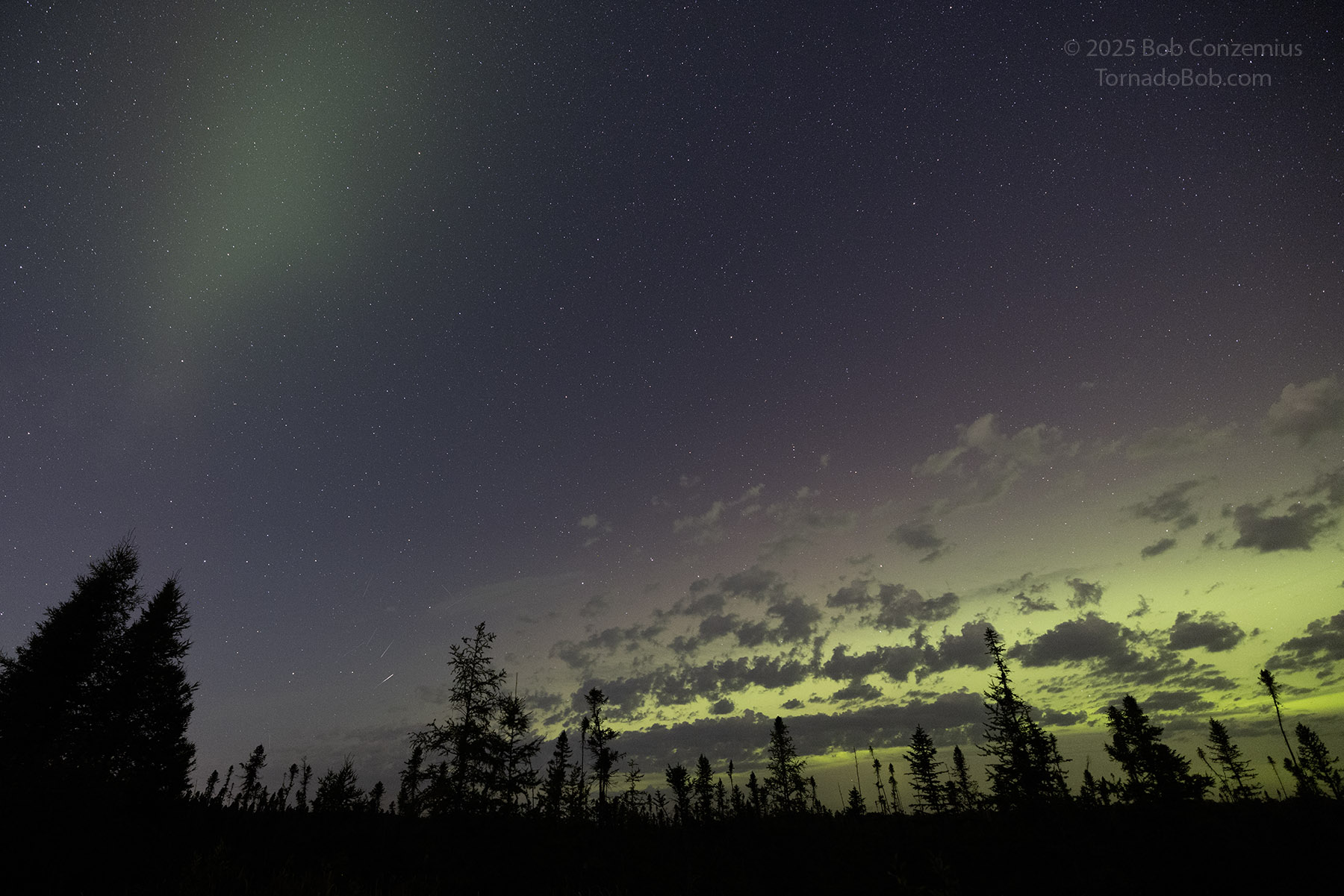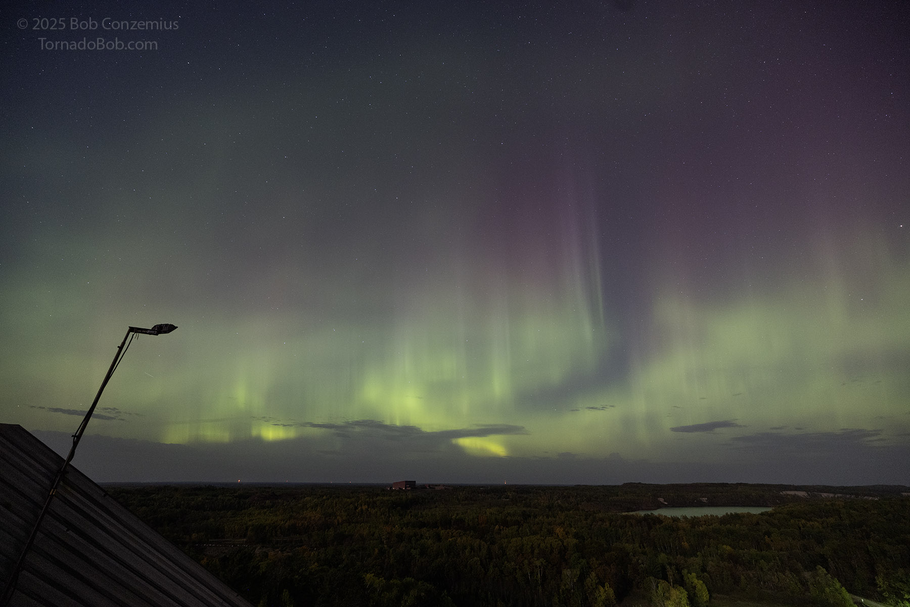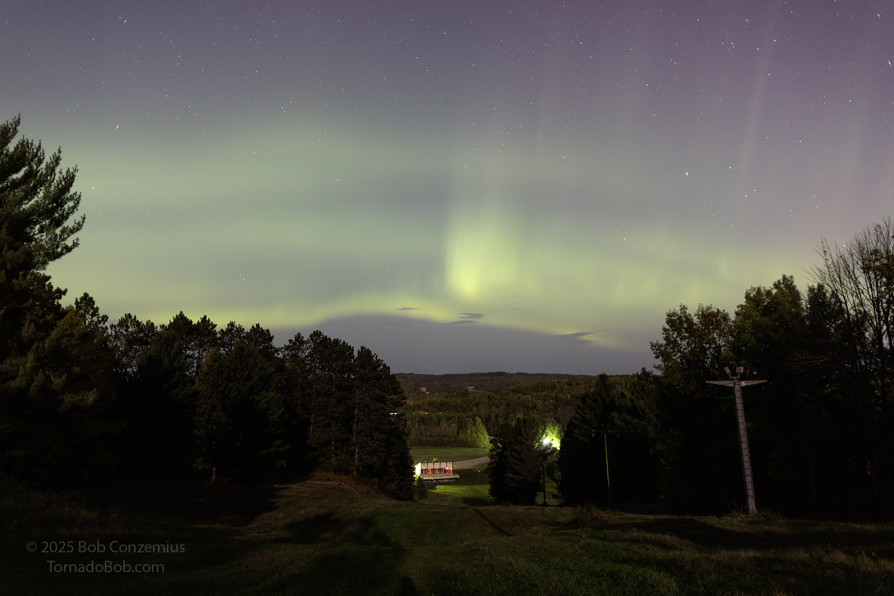 Solar wind conditions were good for auroras, so I went out in the evening to see what I could find. I started out at Peterson Road on the north end of Grand Rapids. The moon was coming up, so I decided to go out to Mount Itasca and try to get some moon-illuminated colors. We were still near peak fall color, and the aspens were turning color now. Most of the trees visible to the north from Mount Itasca are aspens.