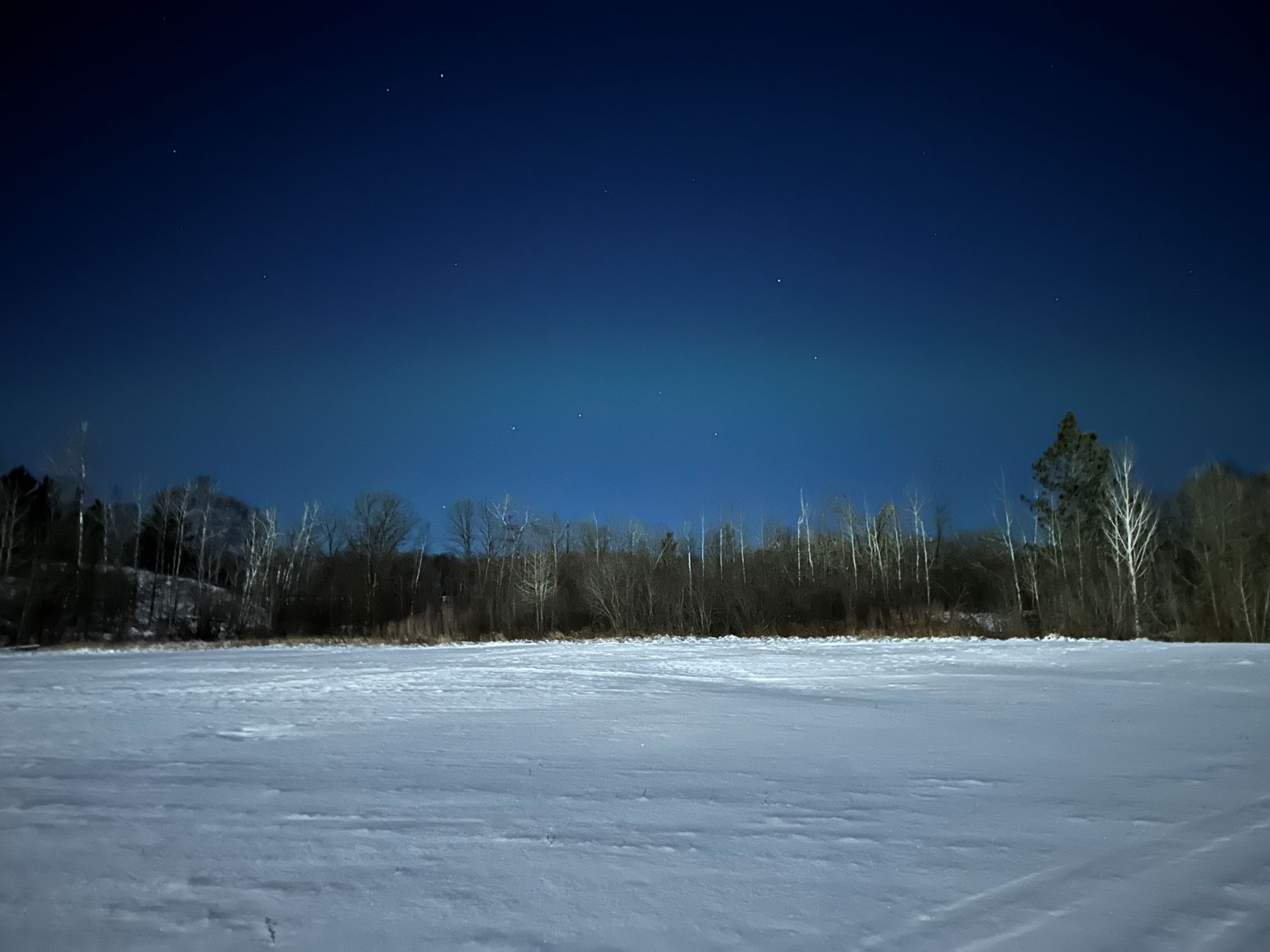 Nothing fancy here. Just an auroral arc that appeared under a nearly full moon in the evening. I didn't stick around to see any substorm, and the solar wind conditions became a bit less favorable during the night, anyway. This is the picture I took with my cell phone in the middle of snowmaking.