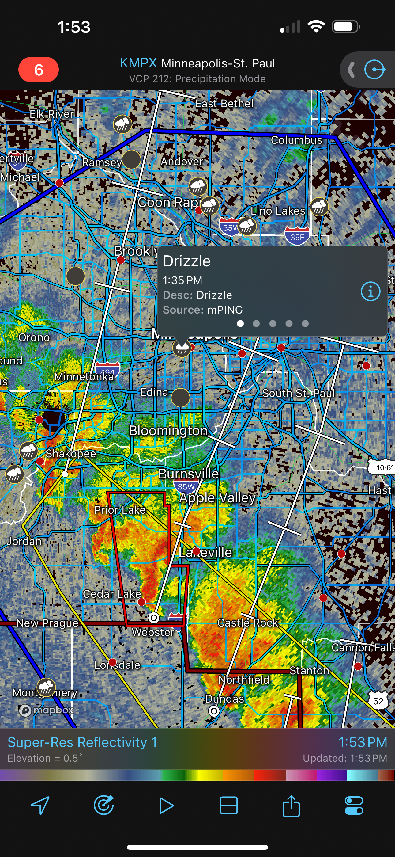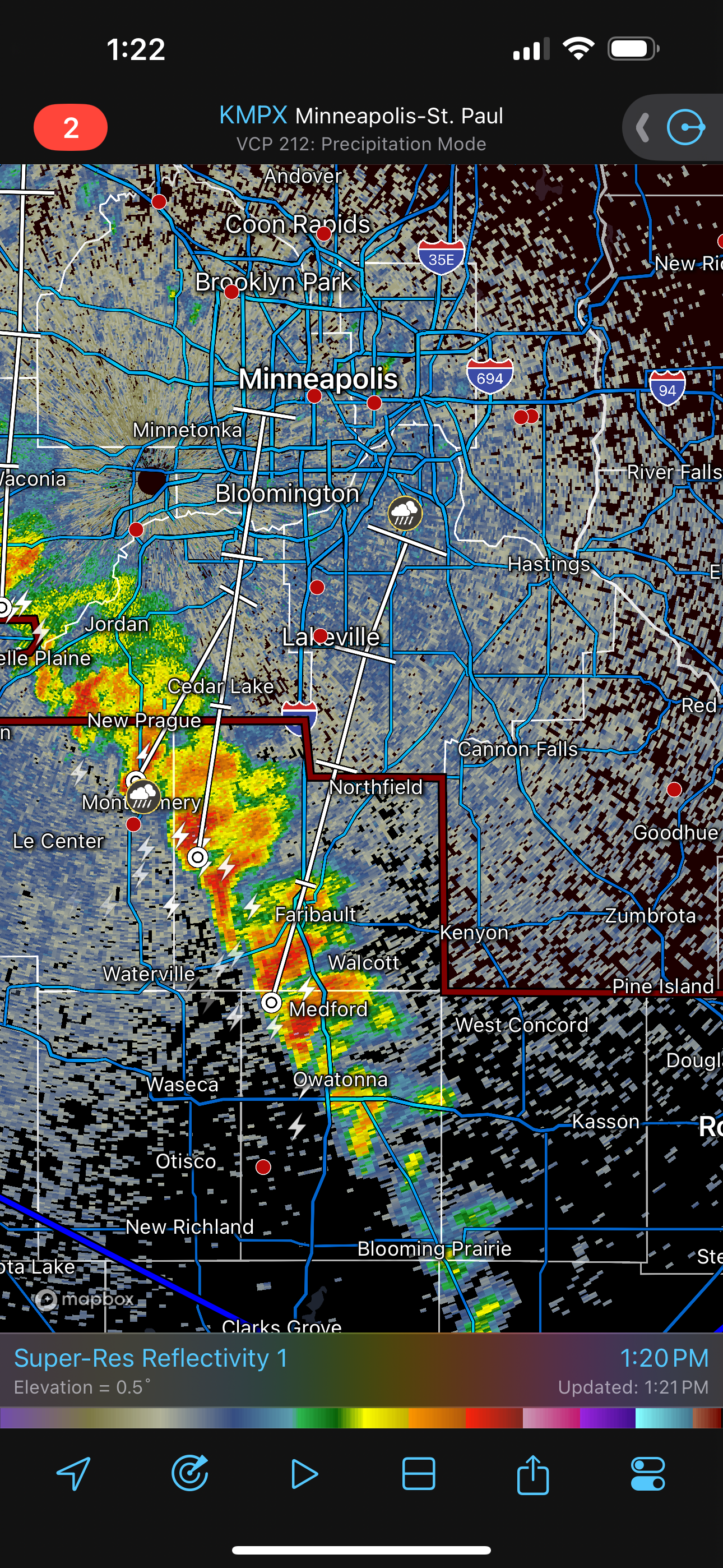| As the cells got farther north, one moved up Highway 65, which I often take to get to the Twin Cities. |