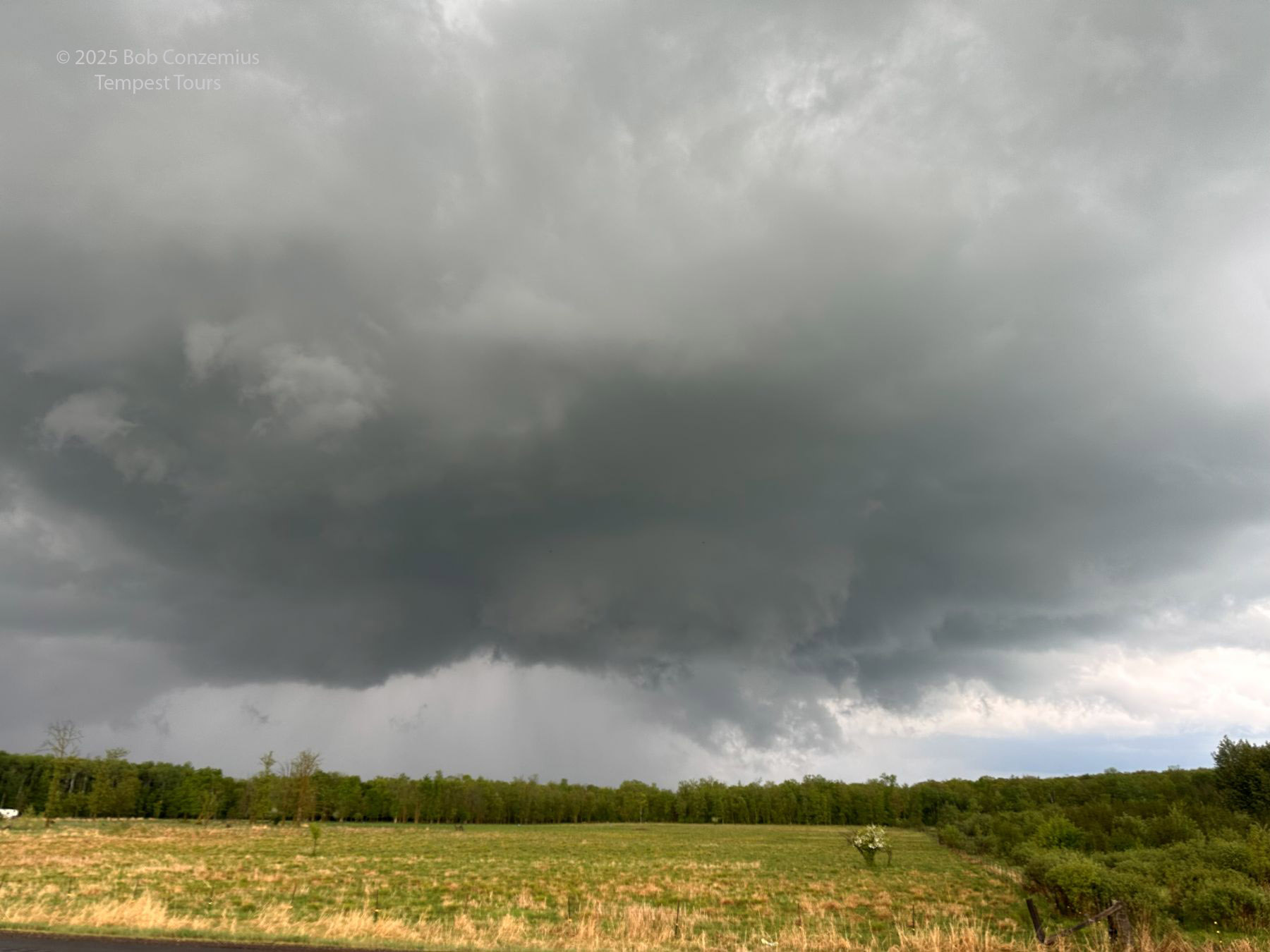 As the cells got into the northern Twin Cities, it was time for me to begin my travel southward. One of the storms maintained some of its intensity and stayed discrete until I got to it. It was no longer warned, but there was some weak rotation with it. As I passed by, I took a cell phone picture of it. I didn't chase this storm, so my chase miles were essentially zero. I got to the Twin Cities and watched the news to see the reports of a tornado near Hammond, WI.