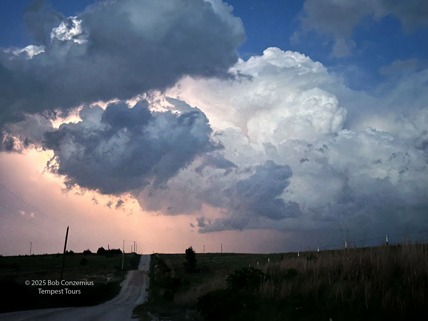 As it turned out, the strongest storms happened back towards Oklahoma City and Ada, OK. When we got to our target, there really wasn't a lot going on. Some storms developed in the eastern Texas Panhandle south of Canadian and moved into Oklahoma, but these were not that strong. We followed them until sunset and enjoyed a lightning show just after sunset.