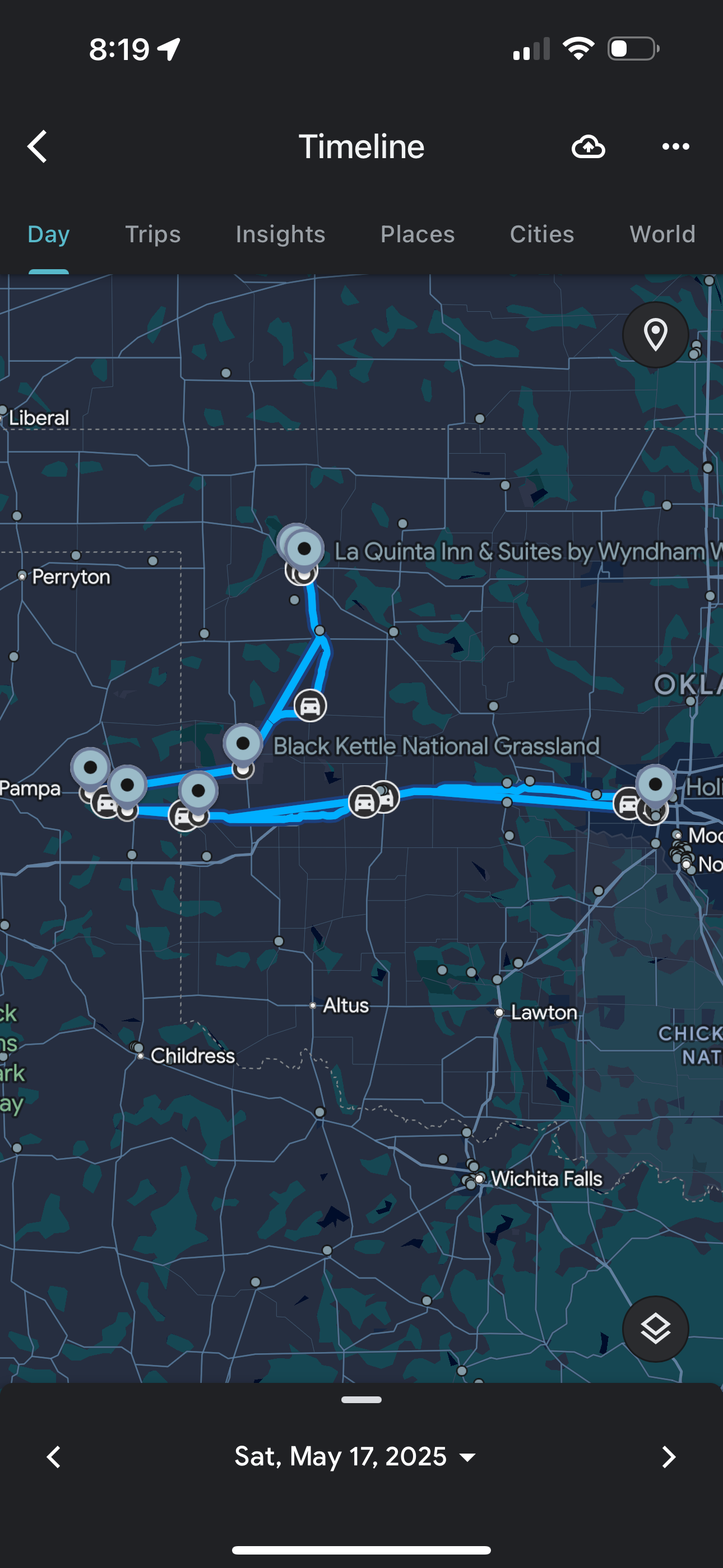 | Our route, taking us into the Texas Panhandle then back into Oklahoma. |
