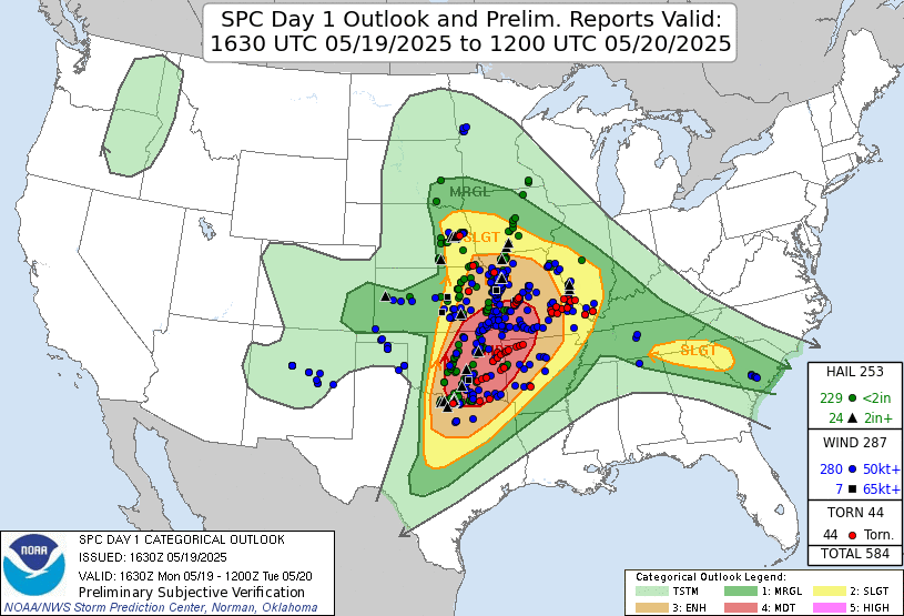| Storm Prediction Center 1630 Day 1 tornado risk and verification. |