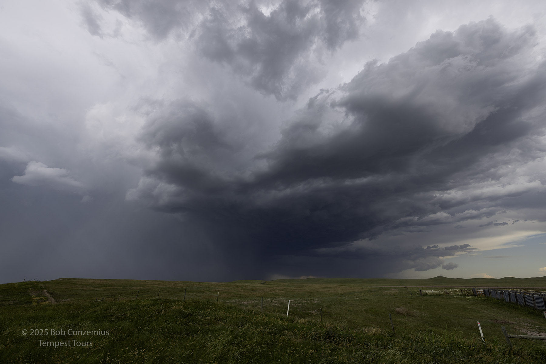 We drove up U.S. 385 to U.S. 18 to South Dakota Highway 79 through Buffalo Gap. We found a storm north of Buffalo gap and stopped to observe it for a while. It was apparently not too impressive because I didn't take any pictures. We watched the storm pass to our north. East of 79, the road network is not good, so we drove back to Oelrichs and took Highway 18 east toward Pine Ridge. I took a couple photos along the way as the storms were beginning to look a little more photogenic. We made a brief pit stop in Pine Ridge then dropped southward into Nebraska. We made another photo stop south of Pine Ridge and then a bit farther south in Nebraska.
