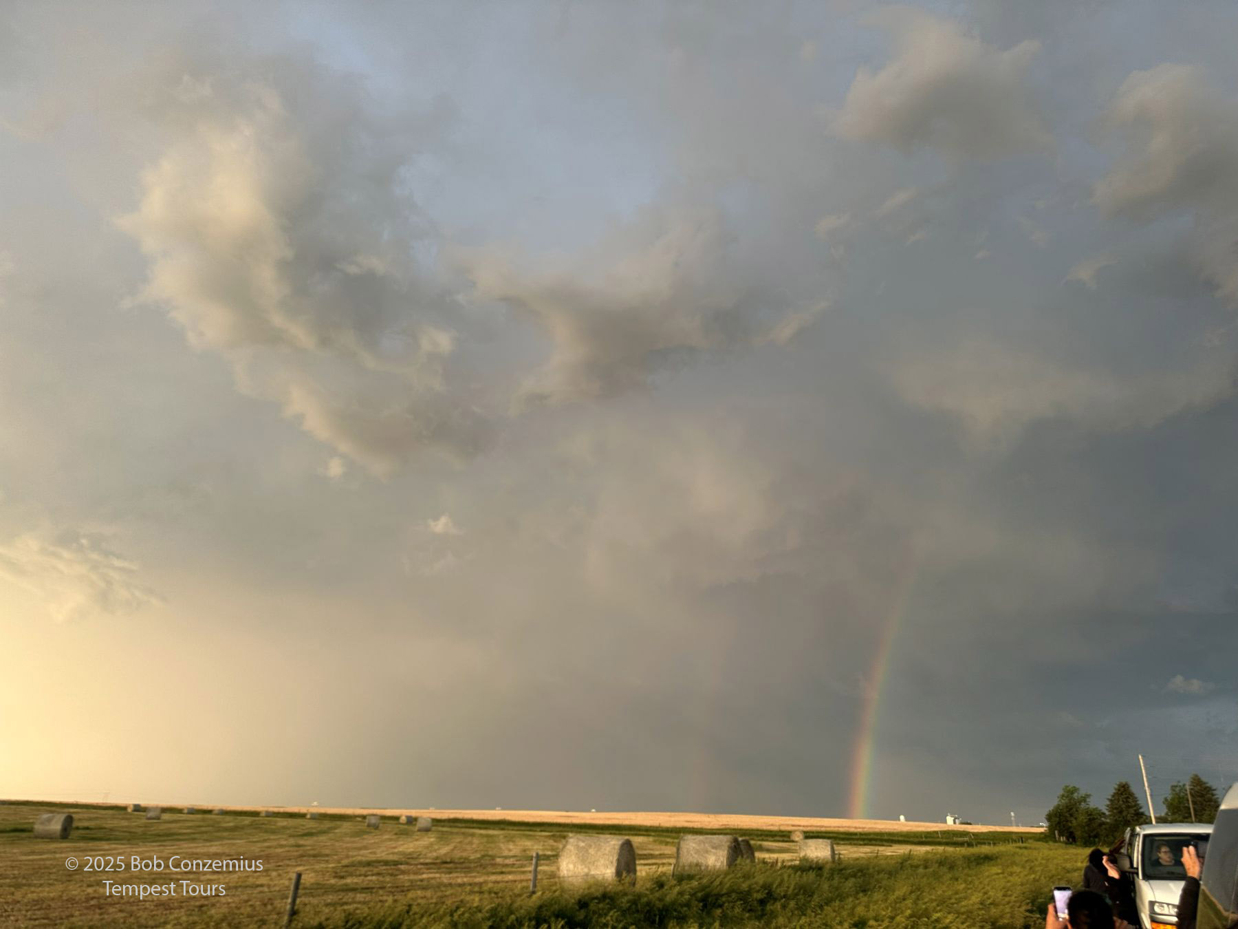 We made a pit stop in Rushville and then headed a couple miles west to pull over and enjoy the storm as it approached. We decided to let it roll over us and then find a place to stay for the night. As it approached, the sun started shining through the rain, creating an enjoyable scene. We got out of the vans after the rain passed, took a few pictures of the sunset and rainbow, then headed for Valentine to stay the night.