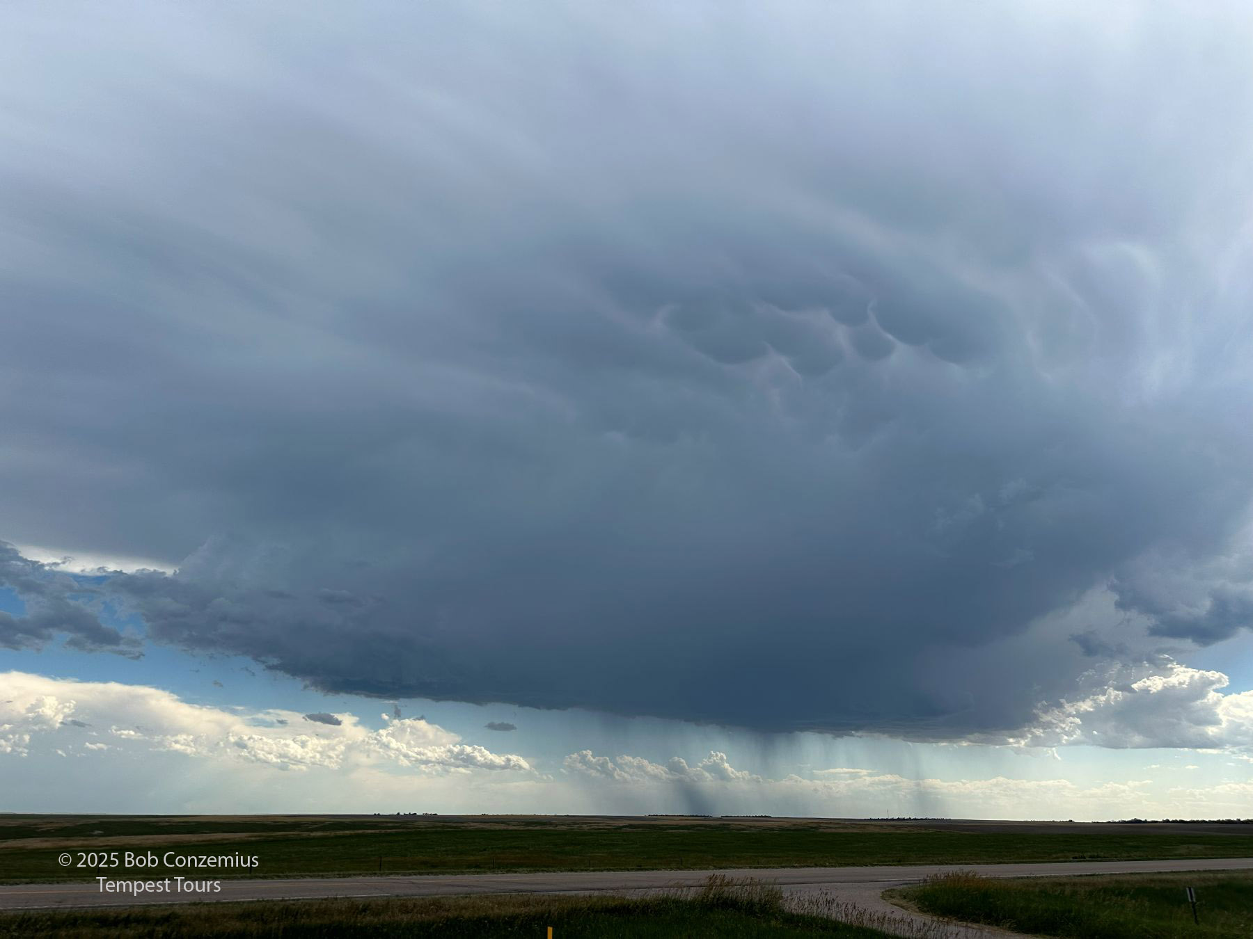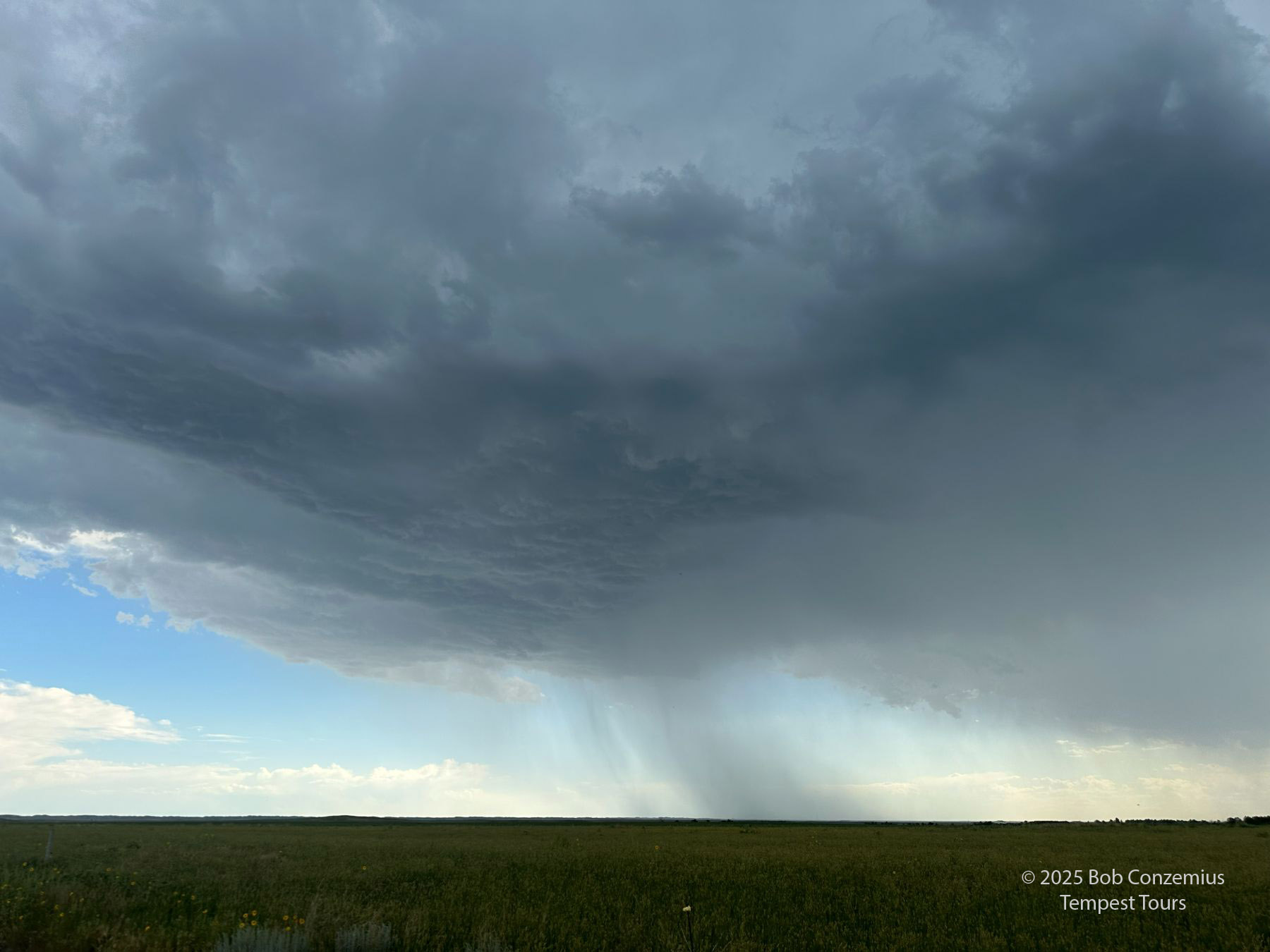 The third day of Tour 10 featured a very large marginal risk area over much of the plains. A look at the convection-allowing models showed the most interesting storms might be in the Nebraska panhandle, so we drove westward from North Platte to Alliance and awaited storm development. We got on a storm west of Hemingford. In order to stay with it, I elected to take us on dirt roads between Hemingford and Alliance. We probably could have done just as well by staying on pavement and swinging wide around Alliance. By the time we navigated the dirt roads, amid a couple close calls with hail/core, we could have gotten around far to the east of the storm. Here are a few shots.