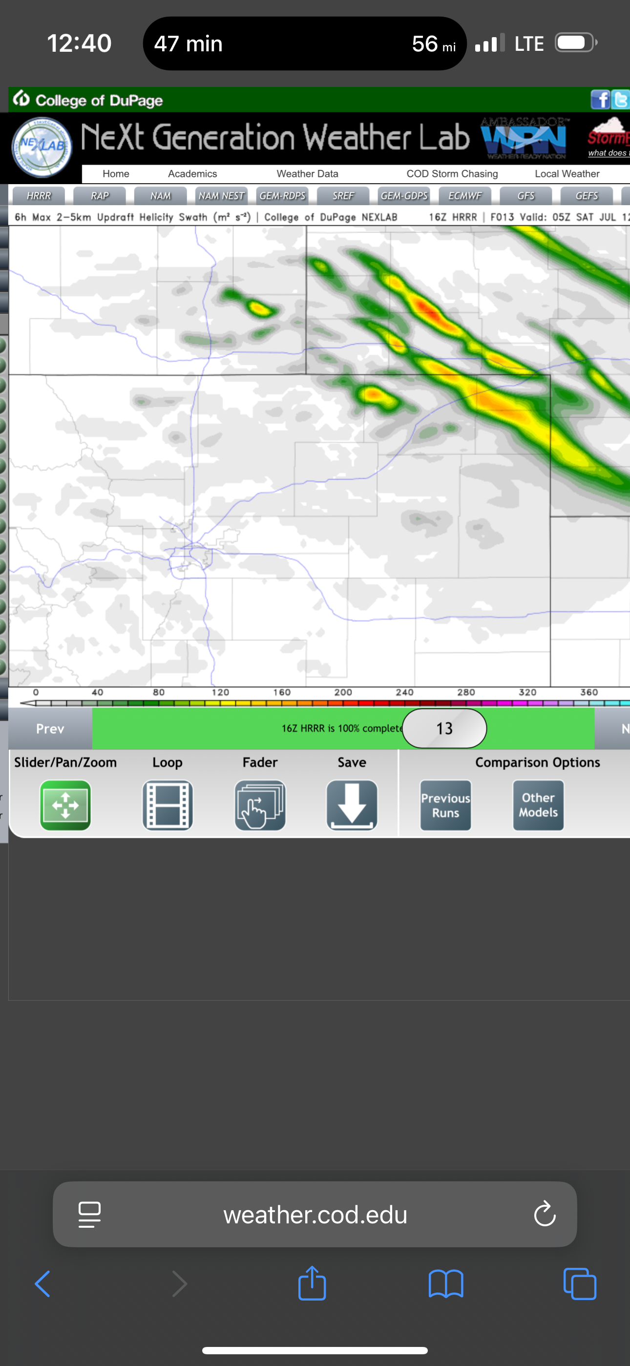 | CAMs showed plenty of helicity swaths in the Cheyenne Ridge vicinity. This looked like a great supercell day. |
