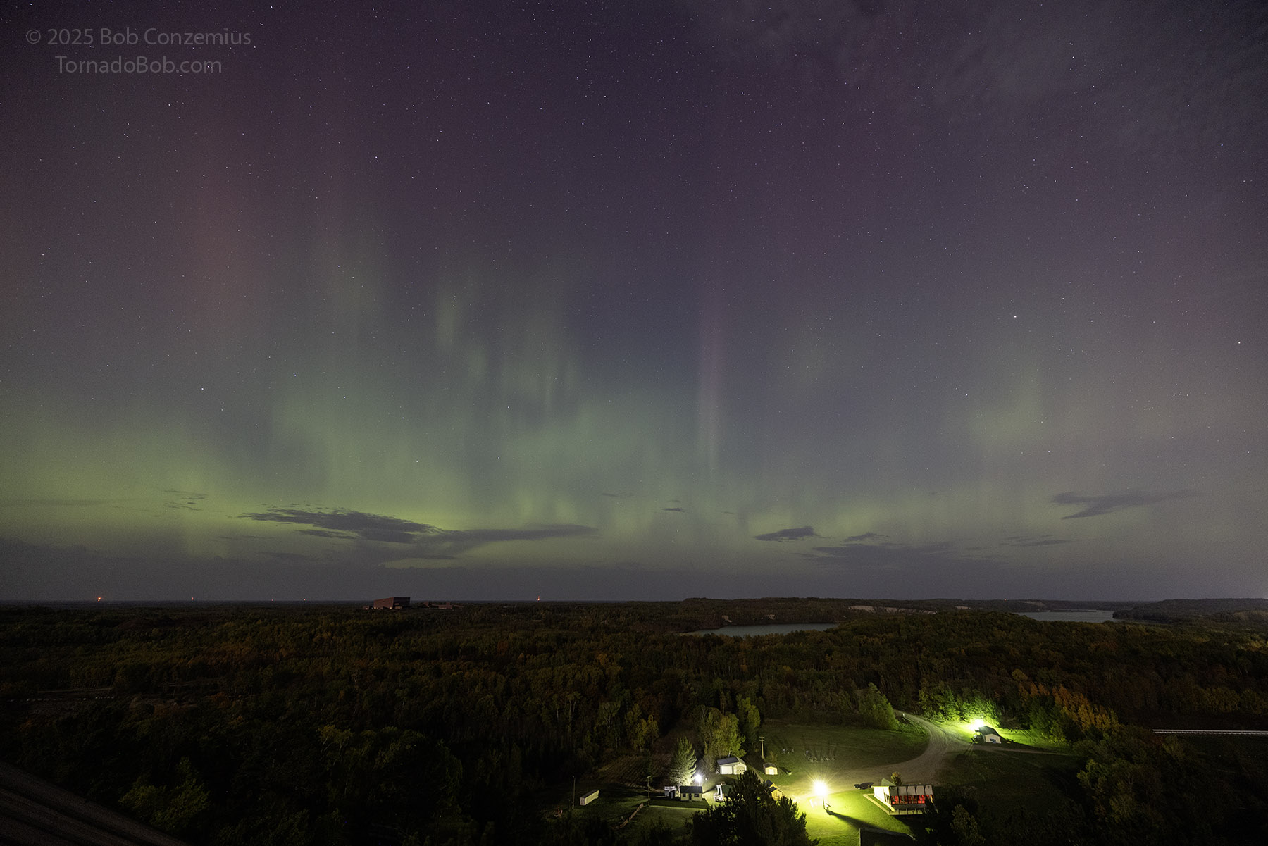 Solar wind conditions were good for auroras, so I went out in the evening to see what I could find. I started out at Peterson Road on the north end of Grand Rapids. The moon was coming up, so I decided to go out to Mount Itasca and try to get some moon-illuminated colors. We were still near peak fall color, and the aspens were turning color now. Most of the trees visible to the north from Mount Itasca are aspens.