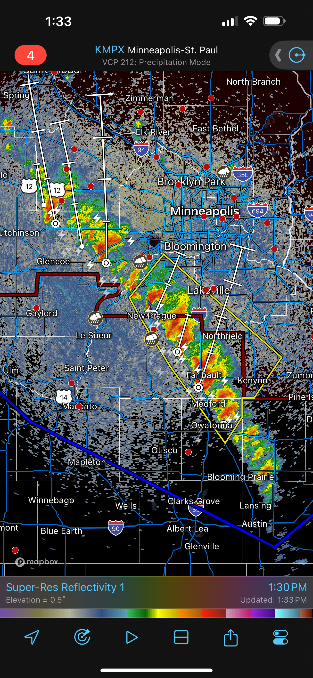 | As the cells got farther north, one moved up Highway 65, which I often take to get to the Twin Cities. |