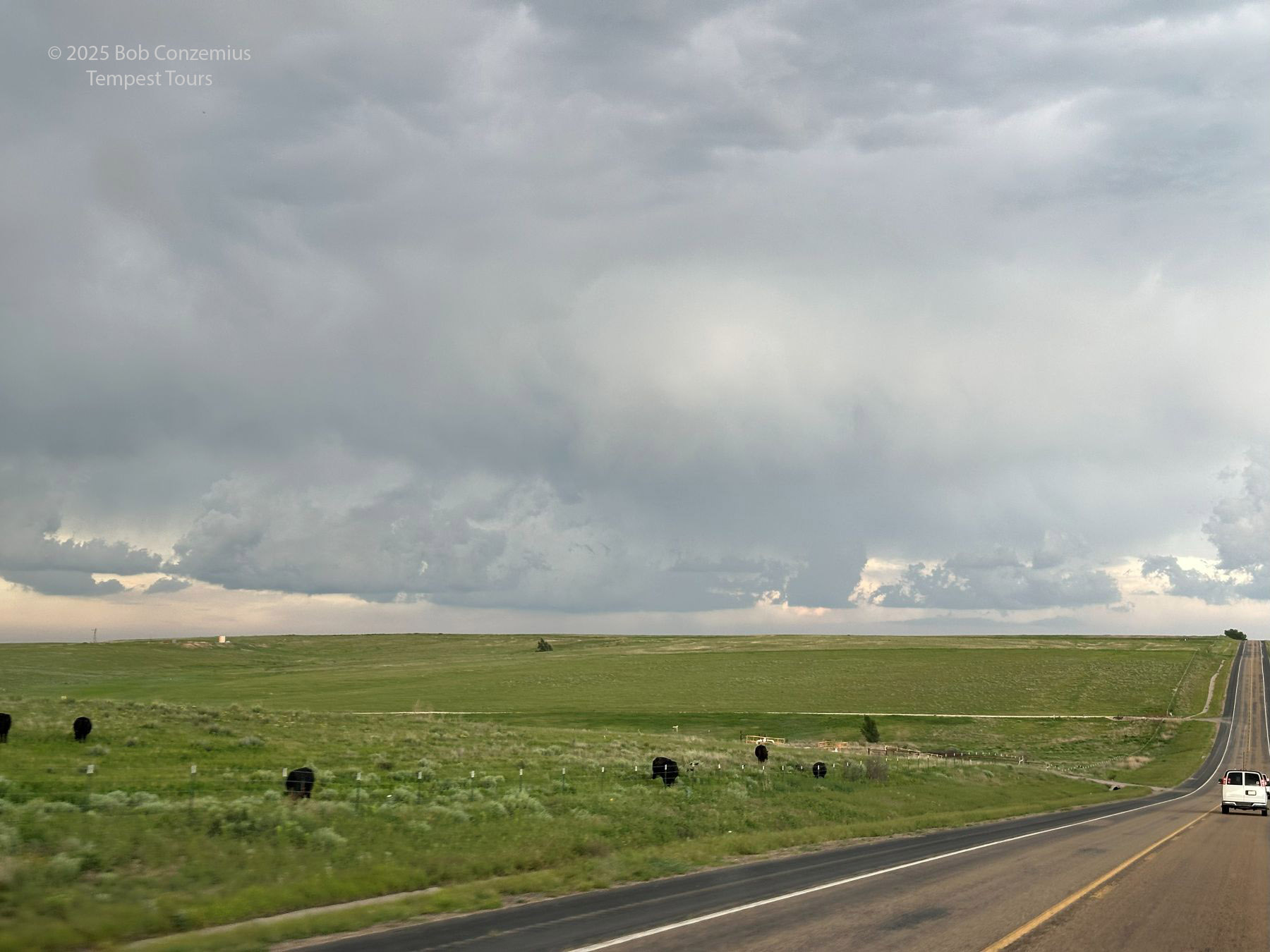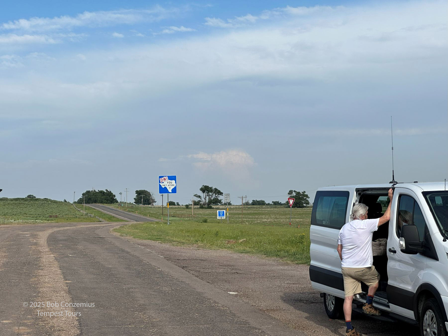 | As we cross into the Texas Panhandle, the first storms develop far to our east near Oklahoma City. |