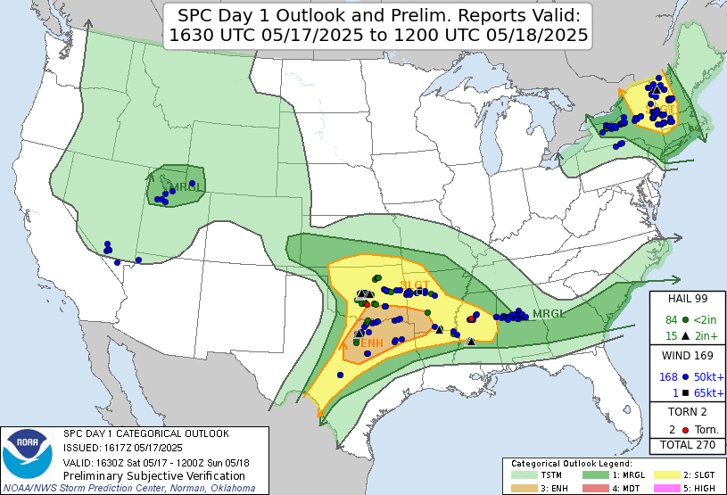 | Storm Prediction Center 1630 UTC Day 1 Outlook. |
