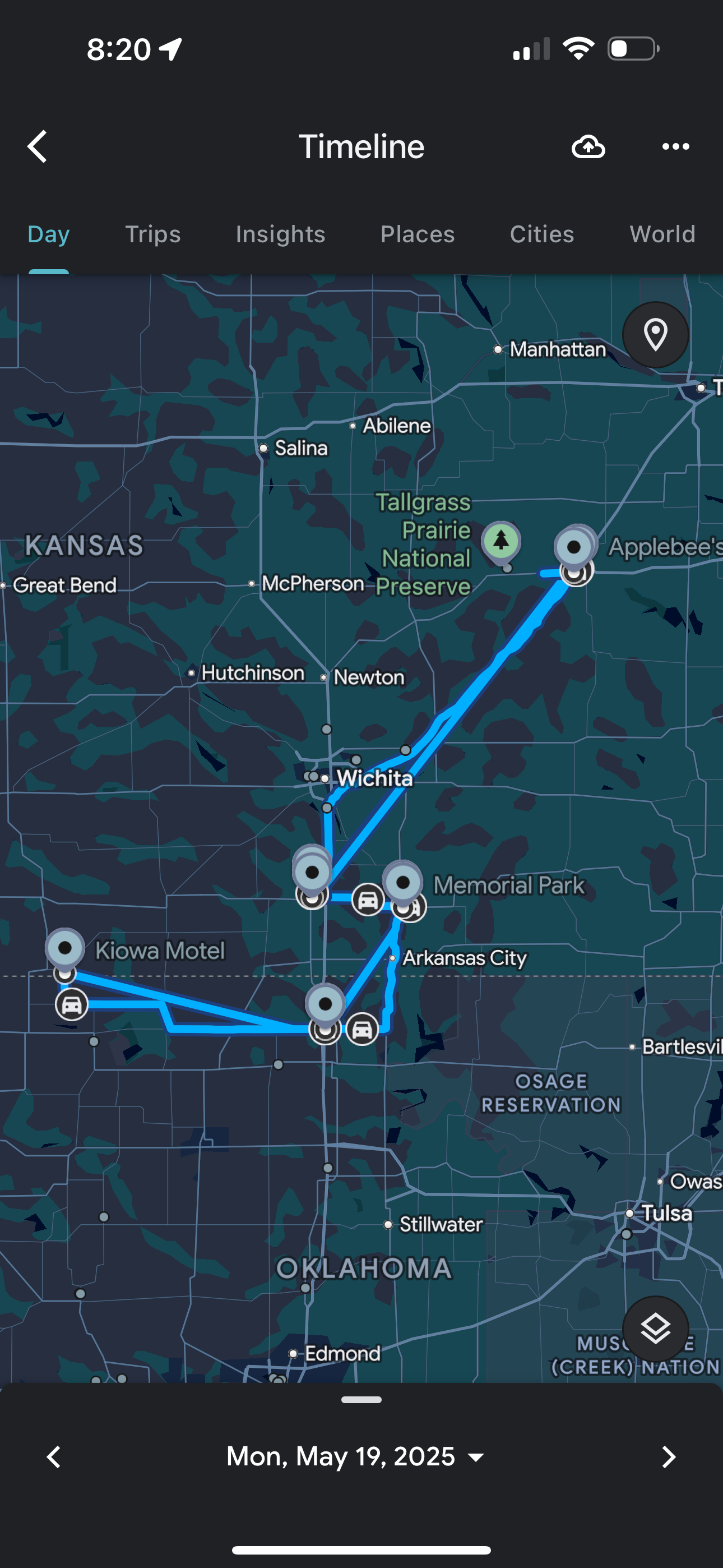 As far as tornadoes were concerned, the atmosphere produced mostly rain-wrapped circulations that were detected primarily by radar-- not by chasers. We drove into northeastern Oklahoma to wait for initiation, but we turned around and drove north back into Kansas as there were no storms developing in that part of Oklahoma. We had more cumulus to the north in Kansas, so we drove to Winfield. Things were still awfully slow to develop, so we waited at a park there to let things evolve. Some storms were developing well to the south in Oklahoma and north Texas, but we did not want to chase those, and they were out of range, anyway.